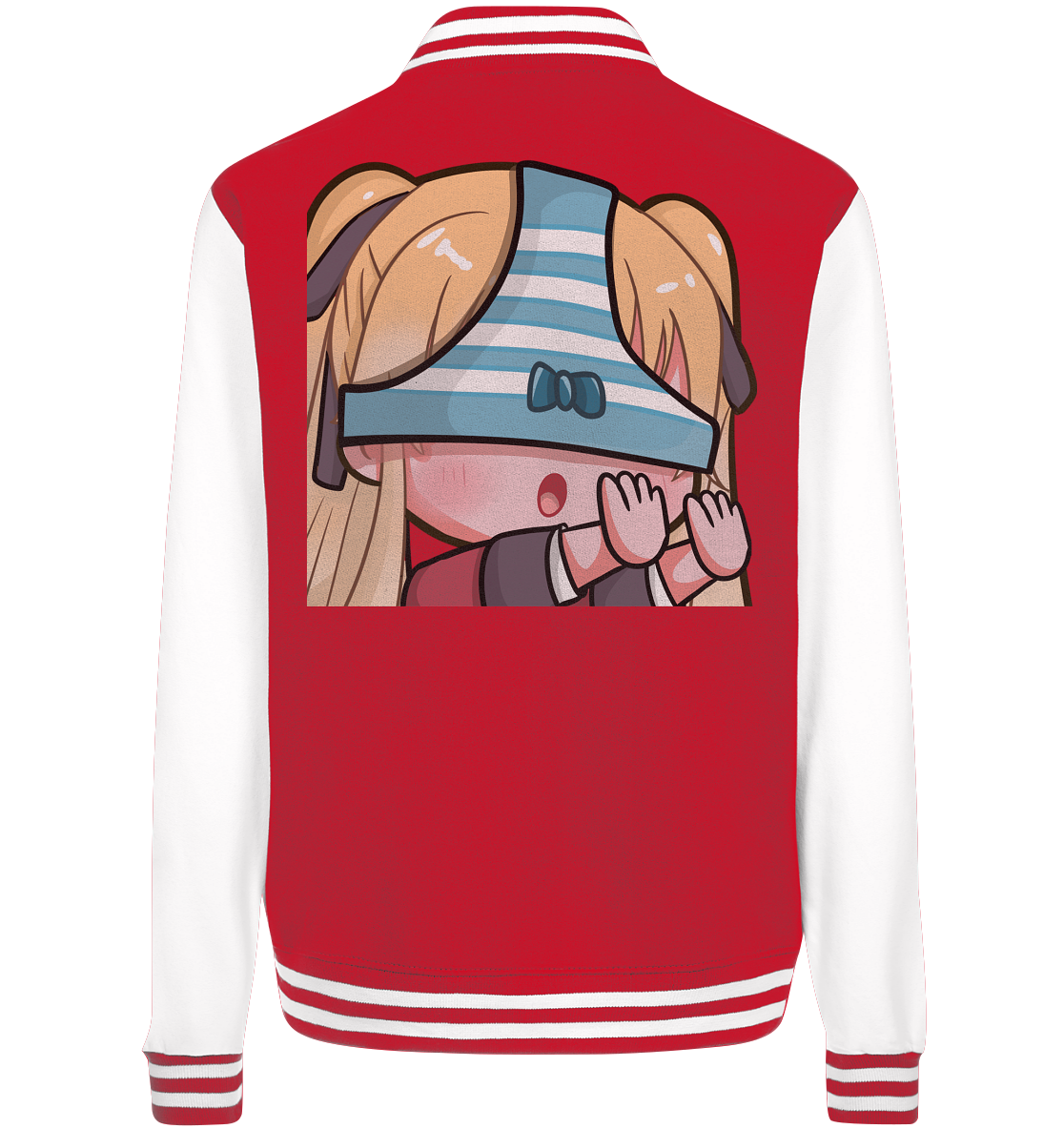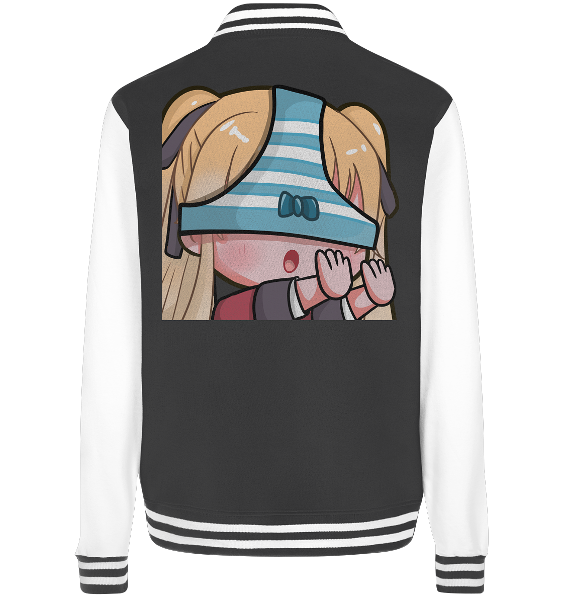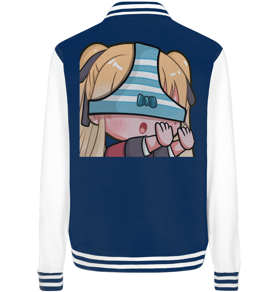 - Gestreifte elastische Bündchen an Hals, Ärmeln und Saum